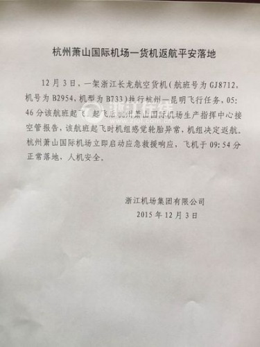 今天上午,一架浙江长龙航空货机在杭州萧山机场迫降成功,以下为浙江机场集团有限公司官方通报全文: