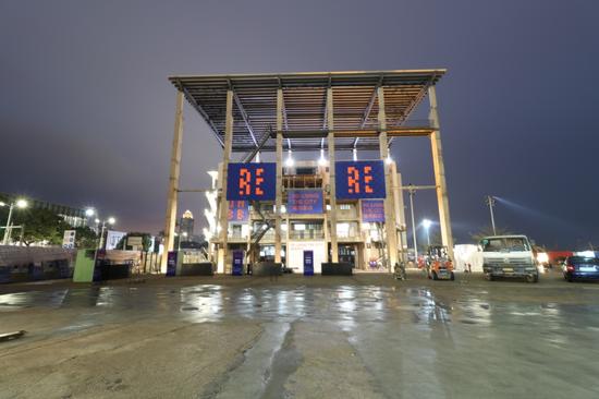 主展场的两个户外装置有来自探索建筑和设计实验室(LEAD)的“竹亭”(The Bamboo Shelter)展示如何以最简单的方式实现迷人另类的建筑成果,提倡对自然材料进行创新性应用,通过这类材料的象征性和文化性关联,强化项目所在地的本地特性。奥地利艺术家Siegrun Appelt设计的户外装置“ 5.3449019547362e+133 ”由72 盏照明灯组成,分布在 8 根桅杆上,通过计算机程序随机原理展示一场经过精心设计的灯的开与关的互动。这个项目名称来自不同照明序列相互作用可能产生变异的数量,虽然人类在其生命周期内是不会有足够的时间去了解和体验所有的可能性的,但光会不断创造出新的、轮流交替的感知视角。