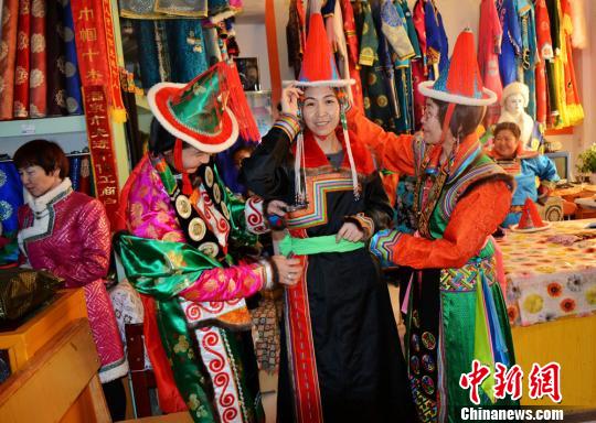 雪山蒙古族传统女款服饰。乌仁花摄
