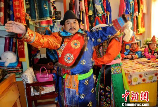 传统雪山蒙古族男款服饰。乌仁花摄