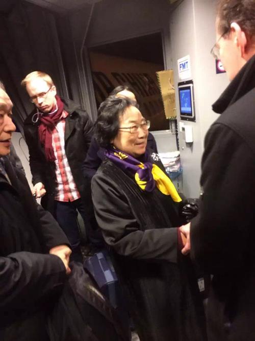 12月4日屠呦呦乘坐飞机抵达瑞典机场,诺贝尔医学奖评委会官员到场迎接。