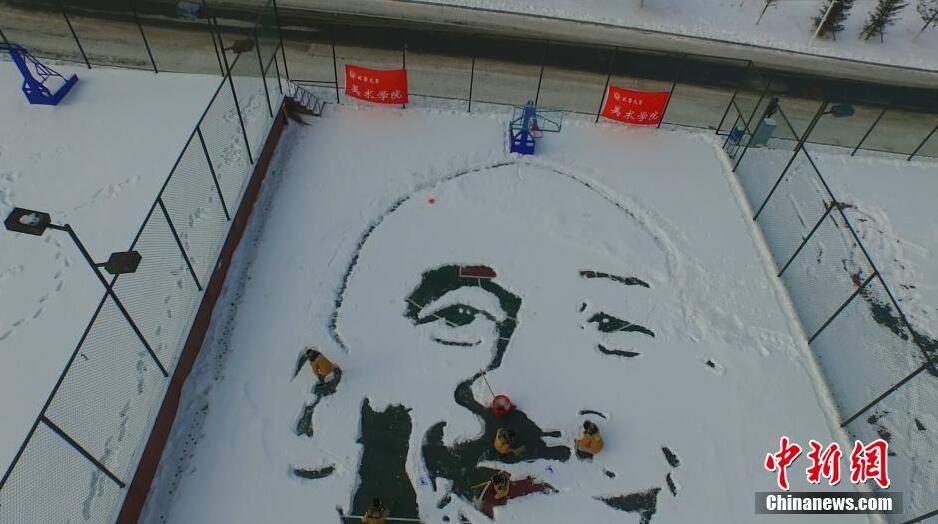 吉林大学生雪地里作画 致敬“永远的科比”2