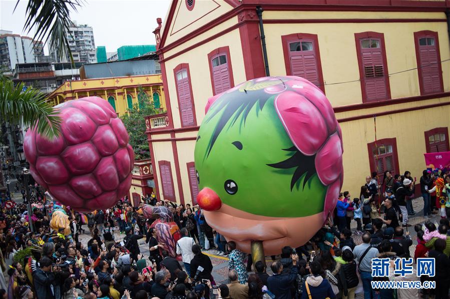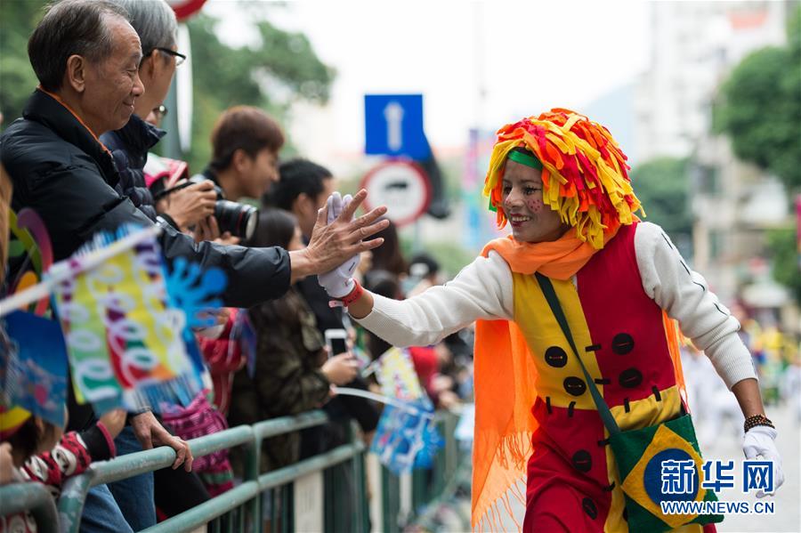 12月6日,人们在澳门参加拉丁幻彩大巡游。当日,为庆祝澳门回归祖国16周年及历史城区申遗成功10周年,由特区政府文化局主办大型嘉年华活动——澳门拉丁城区幻彩大巡游上演。海内外千余演员为居民游客带来一场融汇东西方文化的狂欢派对。新华社记者 张金加 摄