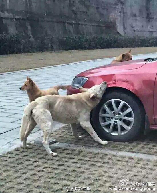 原标题:流浪狗挡车位被踢 “喊同伙”毁车复仇(组图)
