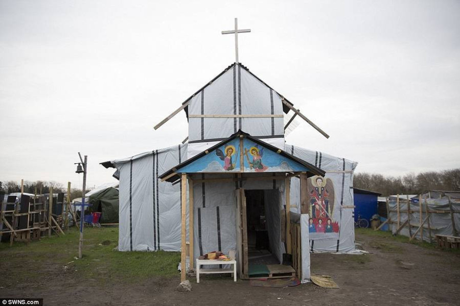 而与此同时,难民依然在密谋前往英国,这种情况与加莱市长所说不同――因为英国的福利更好、更容易获得,也容易找到工作。图为当地建立的教堂。