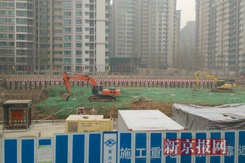 记者在附近看到,考古现场被写有“建设”字样的蓝色铁皮环绕,透过缝隙可以看到施工土地上有高低不平的挖掘痕迹。