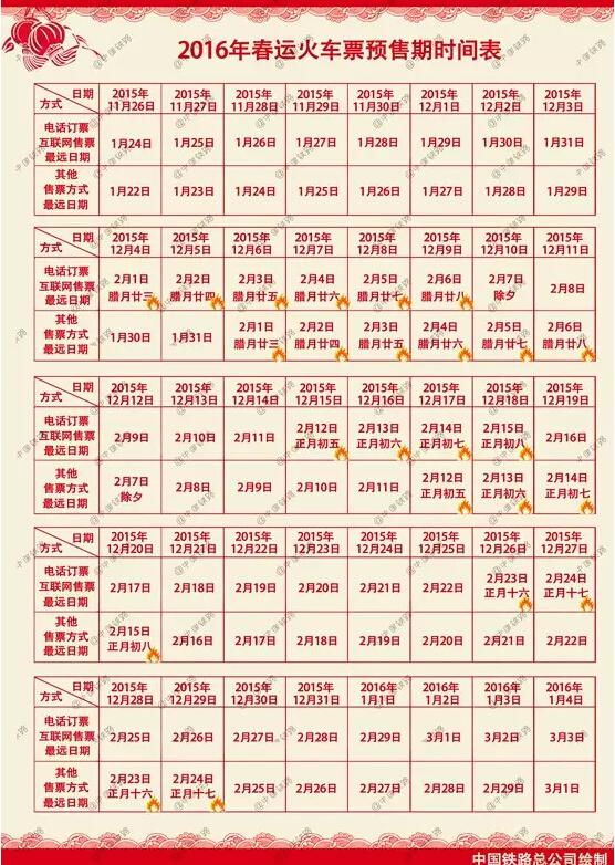 2016年春运火车票预售期时间表