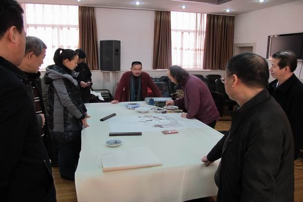 11月25日大雪纷飞,农工党太原市委会会议室却激情洋溢,为纪念抗日战争胜利70周年暨中国农工民主党成立85周年,农工党太原市委在机关五楼会议室举办农工党党内书画名家笔会。市政协副主席、农工党太原市委主委王爱萍,农工党太原市委副主委赵晋春、张永明参加了此次活动。