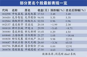 记者粗略统计发现,截至昨日收盘,A股历史上出现更名的记录达到5174次,而上市公司总量为2785家。如果简单推算,差不多每个上市公司都更名两次(含部分被ST股)。第一批上市的老八股中,目前只有飞乐音响等极少数个股了。而今年以来,沪深两市就有212家公司更名换马甲,除了上述三家公司外,麦达数字、永利股份、神州长城、易成新能、中天能源、财信发展等等都是新面孔。