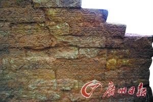本报记者跨入墓室中,只见一块块大小形制近乎一样的青砖在没有明显黏合物的作用下,从墓室两壁向上砌筑,最终形成一个半圆拱形的密闭空间。尽管千百年来的风雨洗刷让穹顶已经出现了明显的裂痕,但剩余的墓砖仍牢牢地契合在一起,呈现一道半圆的彩虹状券顶。满身的泥泞,仍无法掩盖墓砖上精巧的纹饰。一道道呈回环状的菱形大小相间。在一堵墓砖保持较完好的墓墙前,墓砖的图案又变成了玉带扣金钱般的美丽图形。