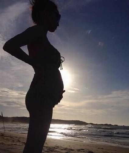 7月8日,欧弟在微博晒出妻子挺着孕肚的侧身照,称:“宝宝第一次下水。”照片中,欧弟的妻子侧身,穿着泳装戴着墨镜站在沙滩上,逆光拍照,显出摸着孕肚的剪影。