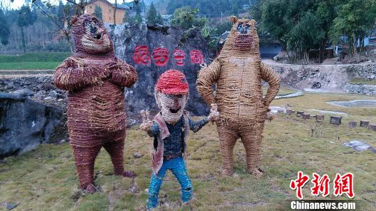 中新网余庆12月10日电 (记者 杨光振 蒲文思)10日,记者在贵州余庆秋收后的稻田里看到当地用收割后的稻草编织成明星动漫角色,用稻草和竹子搭建了约300平米的游戏迷宫,吸引游人眼球。
