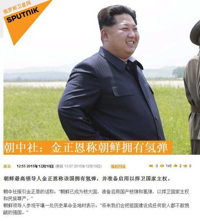 据俄罗斯卫星网12月10日报道, 朝鲜领导人金正恩宣布该国已有氢弹,并准备好将该武器用于维护国家主权。