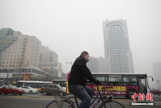 12月9日,山西太原,当日6时中央气象台继续发布霾橙色预警:预计,9日08时至10日08时,北京、天津、河北中东部、辽宁西部、山西中南部、陕西关中、河南、山东西北部等地有中度霾,其中,北京南部、河北中南部、河南中北部等地的局部地区有重度霾。图为民众戴口罩霾中出行。 中新社记者 韦亮 摄