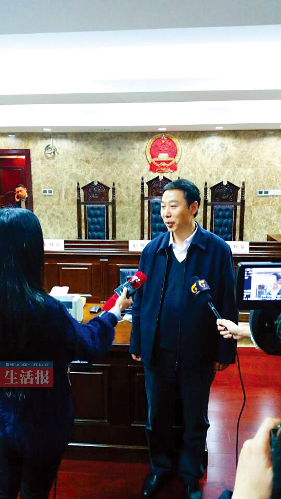 庭后,张文军接受媒体采访。