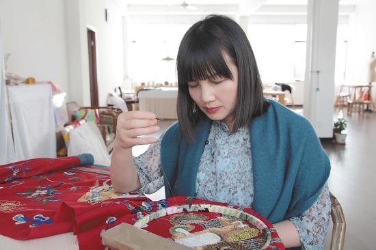 “北方的刺绣像是写意画,而南方的刺绣倾向于工笔画。”她告诉记者,刺绣要花很长的时间来学习,制作过程也是慢工出细活,“这些刺绣精品压箱底太过可惜,所以我想展示出来,外行人看热闹,同行们也能有所启发。”