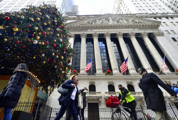 12月16日,行人从纽约证券交易所前走过。