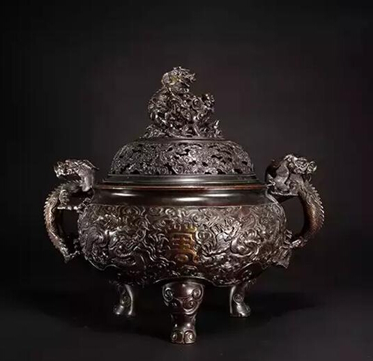 清康熙 铜鎏金万寿无疆龙耳熏炉成交价:483万元