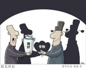 官员也是人,也有享受美、享受艺术品的权力,本无可厚非。但这些靠雅贿成长起来的“艺术家”成“家”之后真正目的不是对古玩、字画等高雅的文化 艺术品的欣赏、对美的追求,而是利用手中权力,搞权钱交易,为自己捞取好处,伸手索要古玩字画,当然这种行为不仅不雅、不正,相反,不但坏了艺术家的名 声,还破坏法纪,损害党和政府的声誉,损害群众利益。