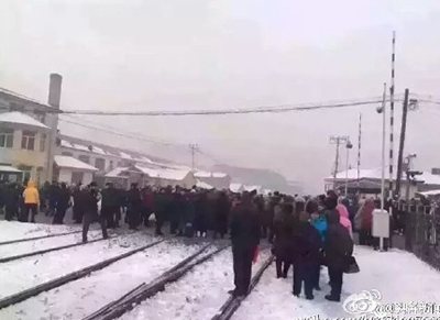 穆棱百人拦截火车导致停滞 因不满调整火车路线 (图)