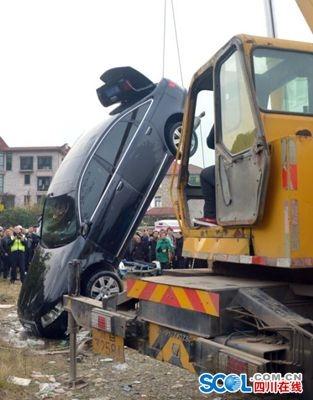 被打捞上来的汽车。李志豪 摄