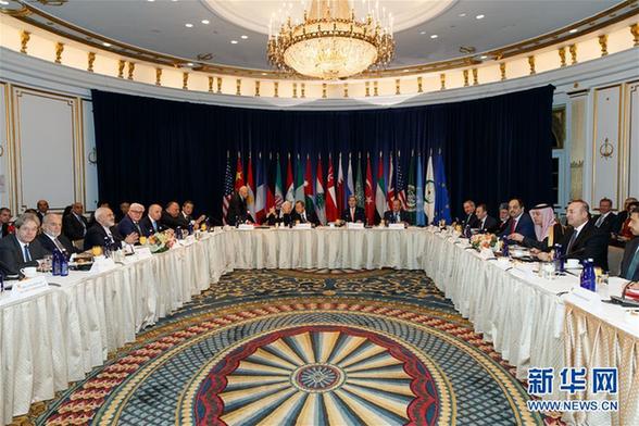 12月18日,叙利亚国际支持小组第三次外长会在纽约举行。当日,外交部长王毅在纽约出席叙利亚国际支持小组第三次外长会。王毅就启动和谈、停火止暴、合力反恐、人道救援和经济重建五大方面提出中方政治解决叙利亚问题的主张和建议。新华社记者李木子摄