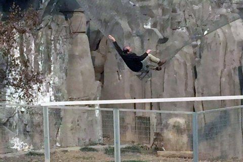 男子坐索道掉入公园虎山,幸被护网拦住