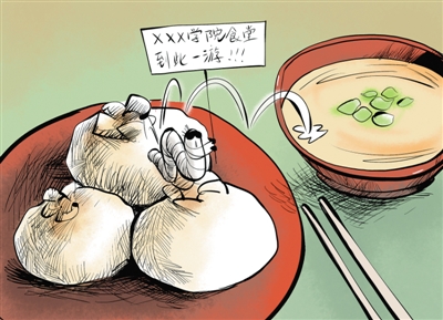 近日,榆林职业技术学院学生在贴吧里发了一张学校食堂包子吃出虫子的图,这名学生说“我同桌吃出来过,他们说那是虾”。网名“梦唯美c”的学生说,“米饭菜有虫子,面条有虫子,米汤也有虫!让人好好吃饭不!”对于学生们反映的情况,12月19日,榆林职业技术学院院长龙云称,“面里偶尔有(虫子)也是有可能的嘛?!保?2月20日《华商报》)