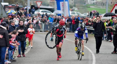 据悉,32岁的埃斯特班在当天的比赛中本来一直稳踞第3名,但他的单车却在离终点约300米处时突然爆胎,埃斯特班没有放弃,他把单车扛在肩上,并向前冲刺。