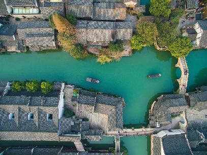 12月7日航拍的乌镇西栅景区的古镇风貌