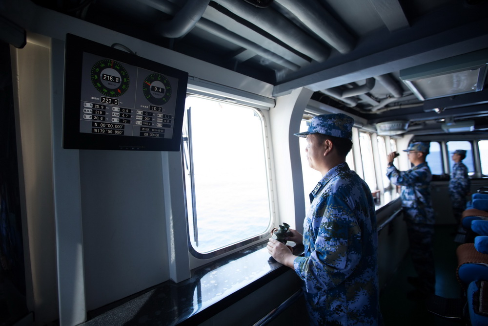 济南舰准时同时跨越赤道和国际日期变更线。张标/视觉中国