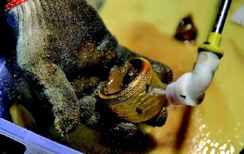 看来这半年来考古队员成了“劳?!?,没少进行抢救性地发掘。在众多被发掘的古墓中,唯一可以大书特书的就是那个大名鼎鼎的“?;韬钅埂?。墓主人的身份据说到圣诞节那天才能揭晓,从目前出土的文物中可以推测,墓主人可能是汉武帝之孙,只坐了27天皇帝的第一代?;韬盍鹾亍5降资撬?,还要等到专家们的最后认定。