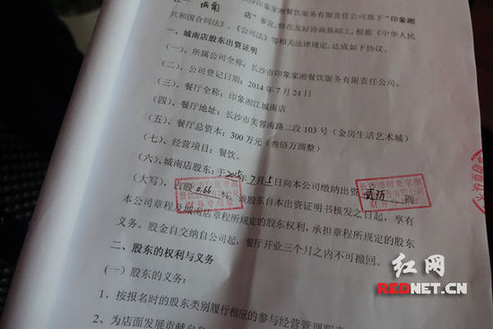 长沙芙蓉北路派出所,一股东拿着城南店股东协议书。