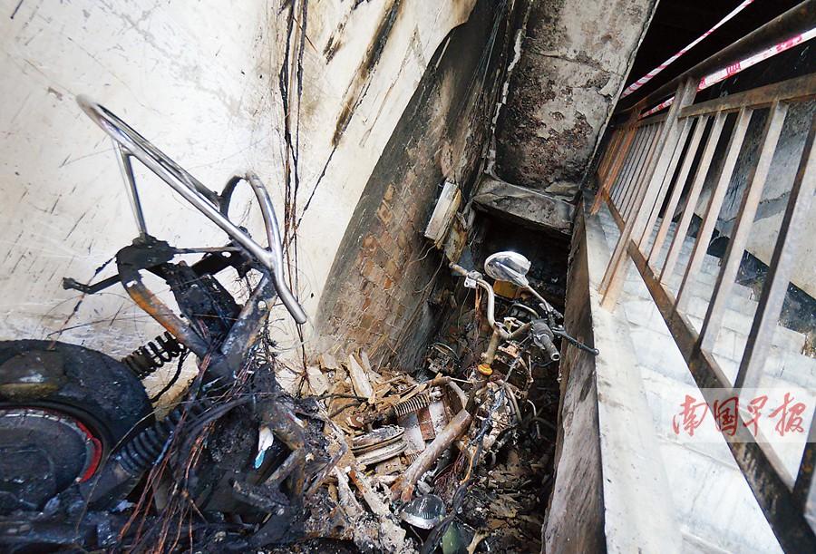 接到报警后,消防官兵很快赶到把火扑灭,险情才解除。“平常有人从楼上拉电线到楼下充电,可能车辆在夜间充电时发生故障引发火灾?!备眯∏镆狄话脖H嗽背疲∏派栌械缍低3档?,可有些居民贪方便直接将车停在一楼楼梯间?;鹪止采栈?辆电动车及两辆自行车,起火具体原因还有待消防部门鉴定。(南国早报 记者何定坚)