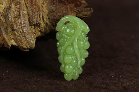 玉雕作品中我们经常会见到瓜果类的玉雕题材,这些作品源自于我们生活中最常见的水果或是植物,经过玉雕大师妙手雕琢之后变得惟妙惟肖。而玉雕葡 萄就是比较受人们喜爱的水果题材,玉雕葡萄的造型十分小巧,用不同玉雕刻的葡萄具有不同的特点,例如墨翠葡萄,代表了内敛,红翡葡萄象征了张扬的性格,绿 色葡萄寓意生命的生生不息……