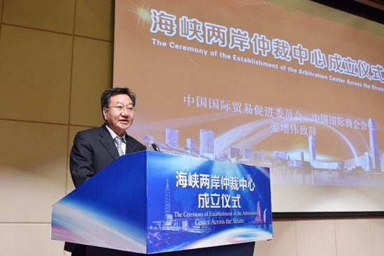 成立仪式上,姜增伟在致辞中说,在平潭设立海峡两岸仲裁中心,是新形势下构建法治化、便利化营商环境,进一步推动两岸经贸关系深入发展的需要,符合两岸工商界的共同期待。仲裁中心可以就近为两岸企业提供仲裁服务,通过法律途径帮助两岸当事人定分止争。希望在各有关方面的共同关心和大力支持下,海峡两岸仲裁中心能突出自身特色,加大推介力度,不断创新和丰富服务手段,着力打造一支公道正派、业务精湛的仲裁员队伍,努力建设水平一流的仲裁机构和两岸仲裁界的共同家园,为推动两岸经贸关系持续健康稳定发展作出积极的贡献。
