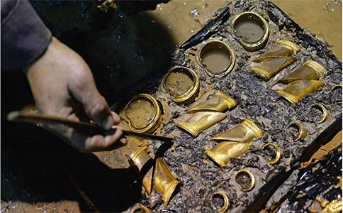南昌汉代?;韬钅棺?1月14日开始1号主墓主椁室清理以来,犹如打开了一个充满魔幻的盒子,尤其发现金器的数量不断刷新我国汉墓考古的纪录。专家称,金光灿灿的?;韬钅梗饪夯平鹣е仗峁┝讼驶畹睦?。