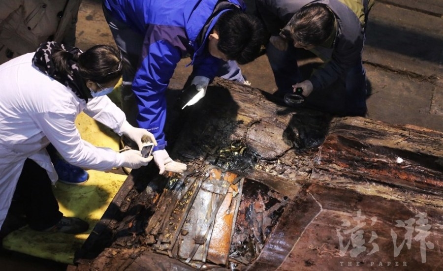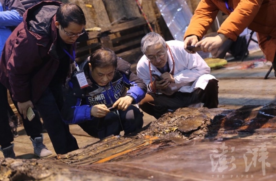据悉,此前专家组预备了两种内棺清理方案,即现场清理和整理打包到试验室进行清理。今日上午,经过专家组的观察分析,确定将整理打包到试验室进行清理,因试验室温度、湿度、氧气含量均可控,可以更好地保护文物。
