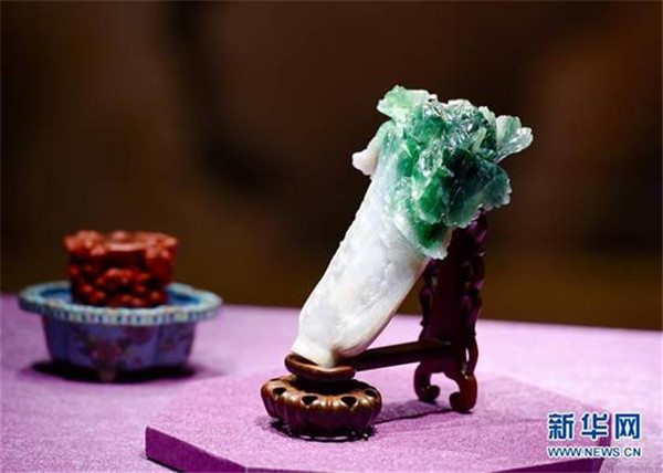 台北故宫南院展出的“翠玉白菜”(12月28日摄)。新华社记者姜克红摄