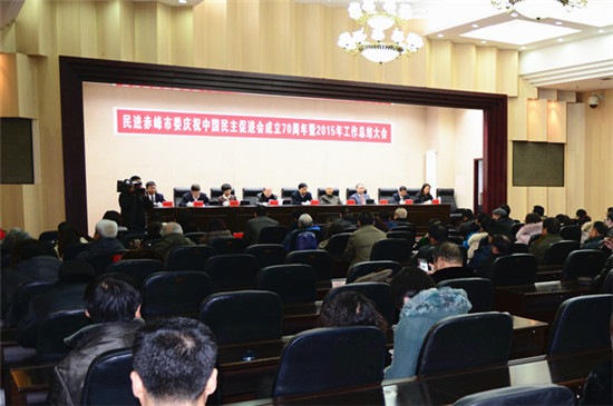 12月26日,民进赤峰市委会召开庆祝中国民主促进会成立70周年暨2015年工作总结大会。图为大会现场。