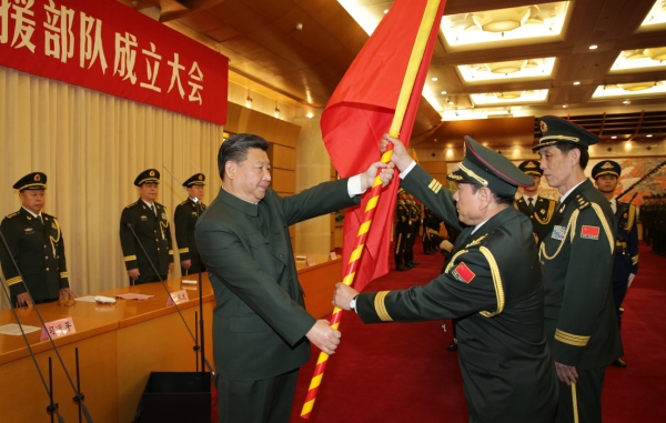 习近平向中国人民解放军陆军火箭军战略支援部队授予军旗并致训词