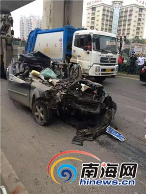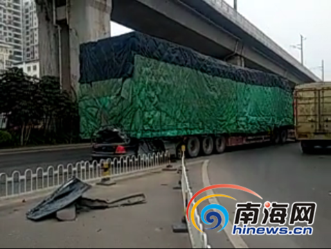 1月2日凌晨5点左右,在??谀虾4蟮郎?,一辆琼C牌照的黑色小轿车追尾同向行驶的大货车,导致轿车钻进货车车底,小轿车顶部遭削顶,驾车男子当场死亡,车祸现场十分惨烈。据了解,死者王某,澄迈老城人。