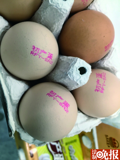 记者看到,这种鸡蛋六个为一盒,每盒售价为19元,打开后,每一个鸡蛋上面都印有“初产蛋”的字样,鸡蛋的个头和普通鸡蛋差别不大。