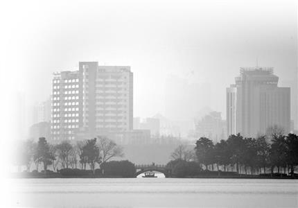 ▲连日来灰霾频现,玄武湖畔也变得朦胧。