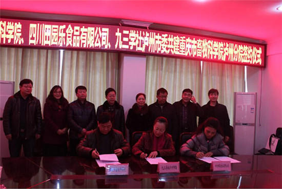 为进一步推动泸州畜牧业的发展,九三学社泸州市委积极通过九三学社四川省委对接国家农业部,推动重庆市畜科院与泸州畜牧业开发合作。经多方的共同努力,九三学社四川省委关心支持下,2015年12月30日,重庆市畜牧科学院、四川田园乐食品有限公司、九三学社泸州市委在泸州市民主党派大楼会议室签订了共建重庆市畜牧科学院泸州分院的框架协议。