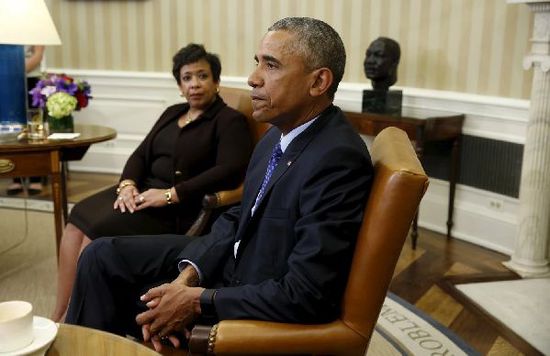 4日,美国总统奥巴马和司法部长林奇商讨采取行政命令控枪。(图片来源:路透社)