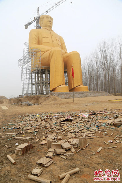 上午11点多,映象网记者来到开封通许县朱氏岗村,在村子西北角,一座即将竣工的毛主席像耸立在村头。