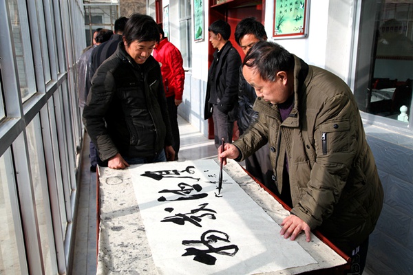此次活动中,共为52户困难户送去慰问品,为全村群众送去春联、书画和剪纸作品共计460余幅。