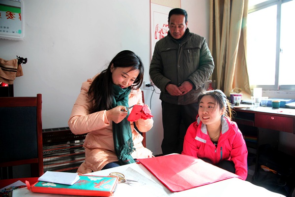 在业仁村委会,农工党党员书画家田镔、马宏伟现场为群众书写春联和书画作品,农工党员剪纸艺术家景爱琴现场为群众创作了精美的剪纸作品。闻讯赶来的群众挤满了村委会,急切地等待着属于自己的艺术作品。书画家和剪纸艺术家们被群众的热情所感动,克服深冬的严寒和高原反应带来的不适,挥毫泼墨,巧手舞剪,激情满怀送祝福。一条条饱含祝福的新春对联,一幅幅苍劲有力的书画墨宝,一件件精美绝伦的剪纸作品,递到了群众的手中,带去了全省广大农工党员情系基层百姓,助力精准扶贫的赤子之心。