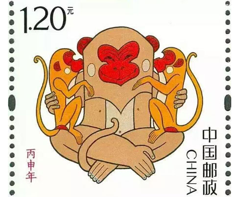 国画大师黄永玉92岁高龄再度创作猴年邮票。本轮猴票图案内容分别为:灵猴献瑞、福寿双至。第一图,猴子手托寿桃,面带笑容,形象活泼可爱,生动传神。第二图,一只金猴抱着两只橘色的小猴象征亲情,也寄托着阖家团圆、福寿双至的吉祥寓意。